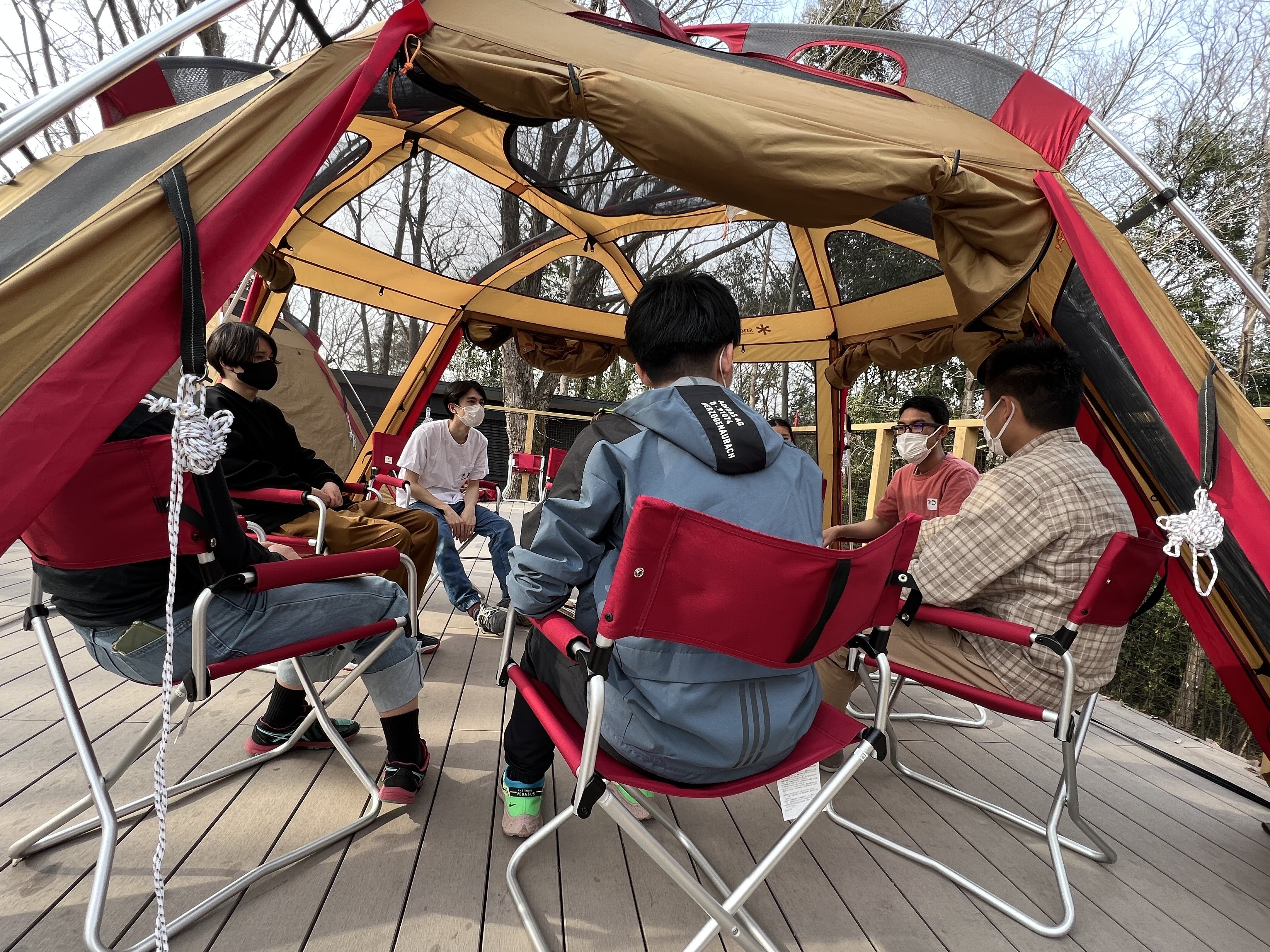 GHSCチームビルディング研修: チームによるテント設営体験や焚火トークで、コミュニケーションのありかたを学び、絆を深めました。